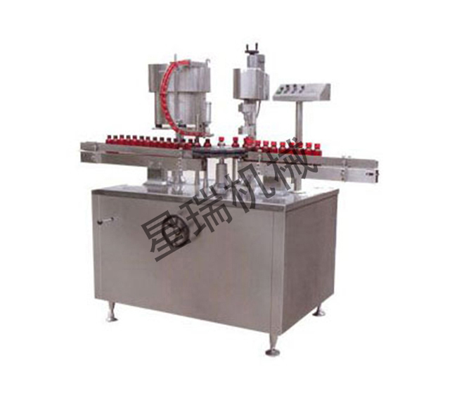 该机种设计新颖独到、机械扭矩控制智能化,并且操作与调节十分便利,操作人员只需将瓶盖置于瓶口上,瓶子在向前运行的过程中,瓶盖被三组搓盖轮自动拧紧。既可用于单机生产,更是连线生产的理想机型。可方便地升级为完全的自动旋盖机ASP,我们有提升式、斜盘式、震荡式等落盖系统,可根据实际需要选配。